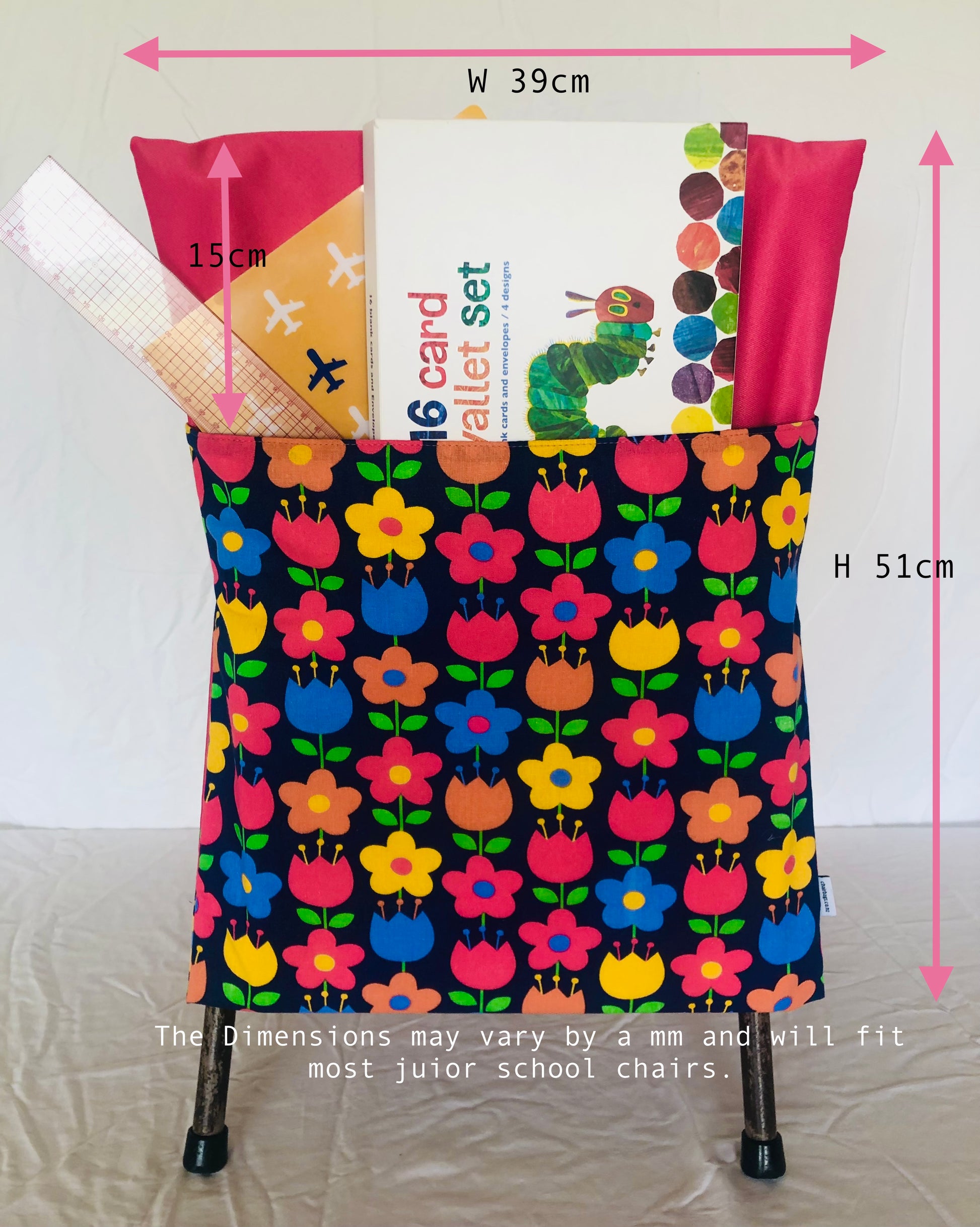 CHAIRBAGS are washable and designed for children’s chairs in the Junior School. The dimensions will fit most junior school chairs but can be made to measure if required.